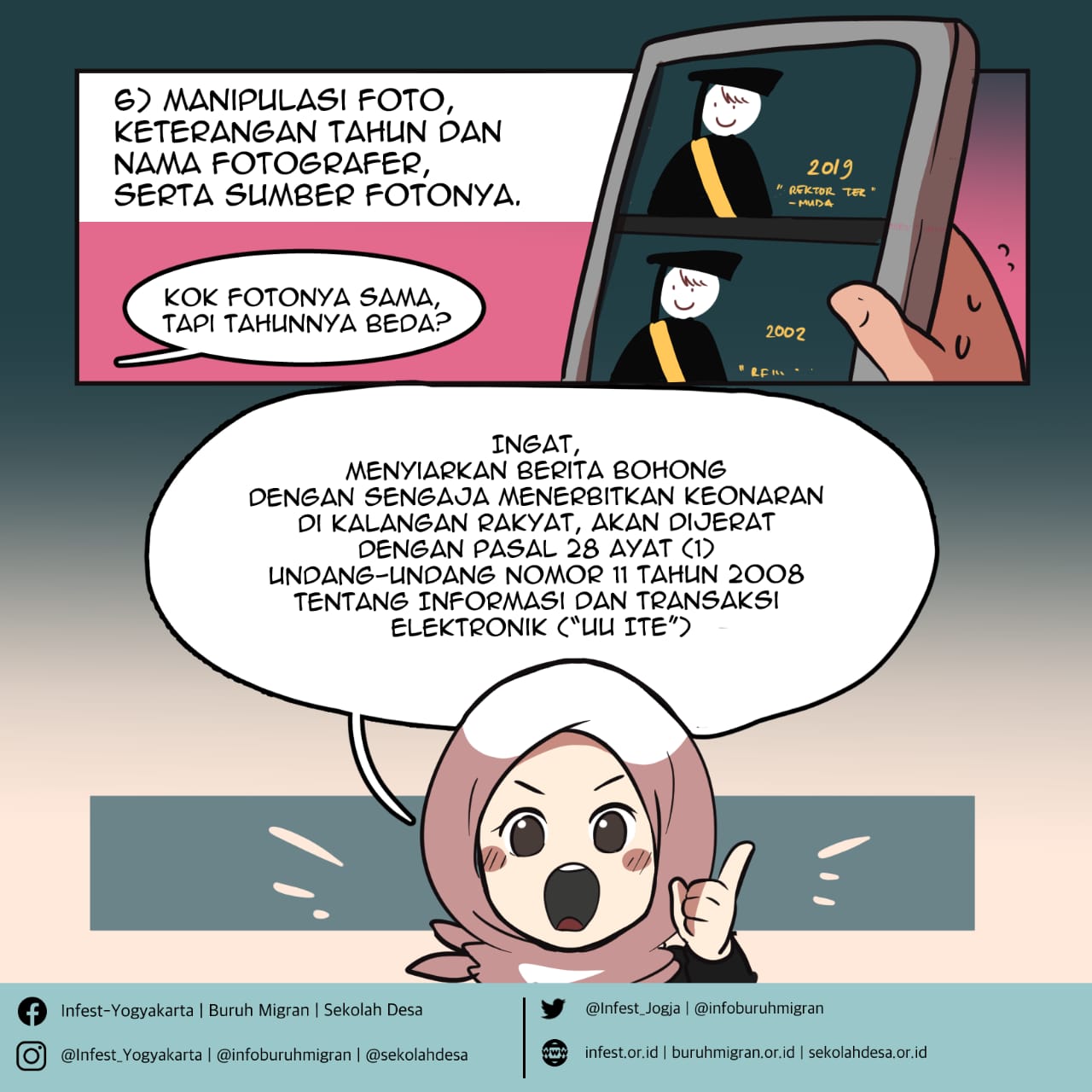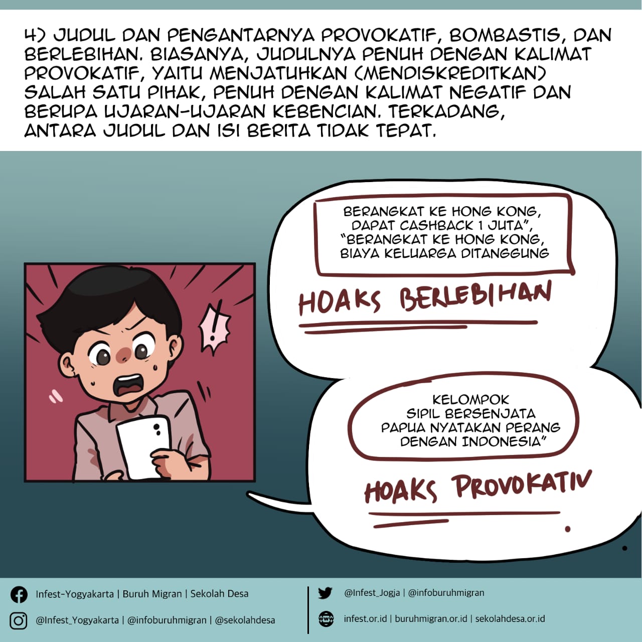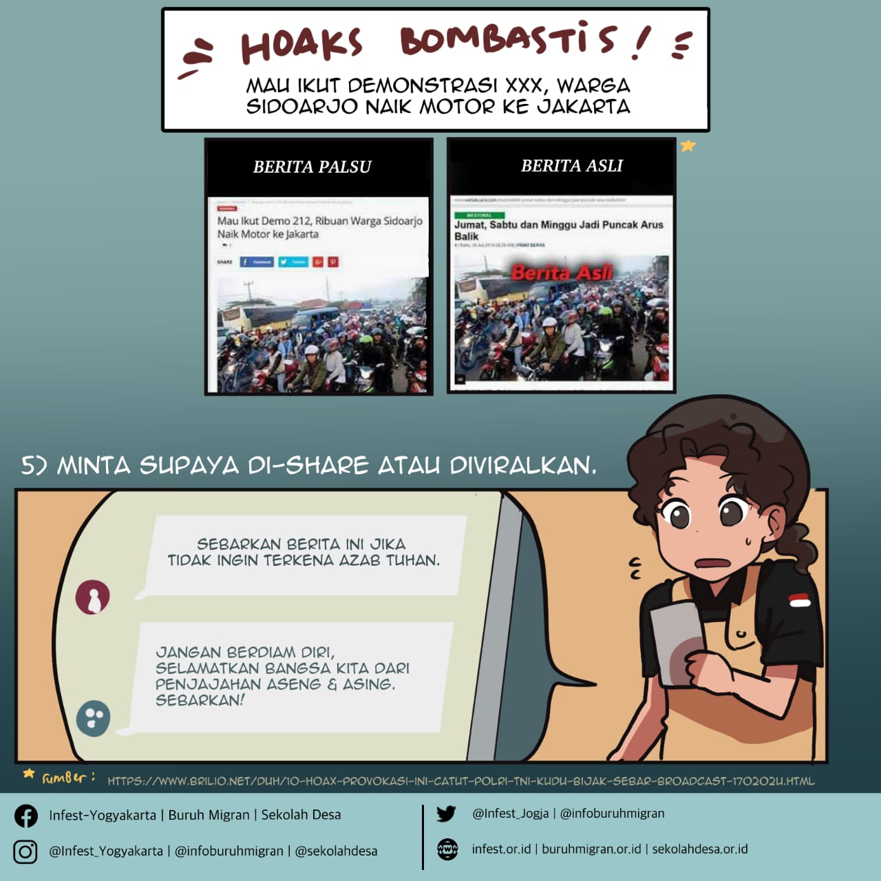 Infografik di bawah ini dapat membantu anda mengenali berita bohong atau hoax.